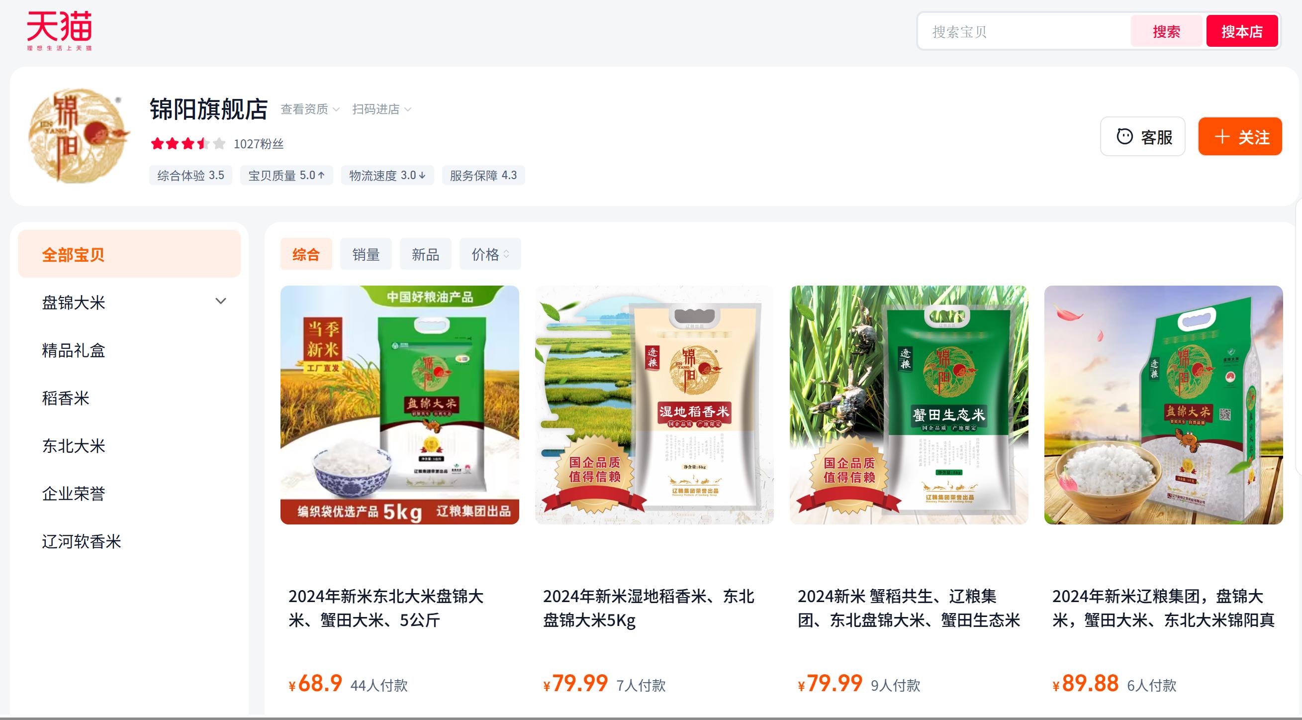 辽粮集团大米淘宝店铺